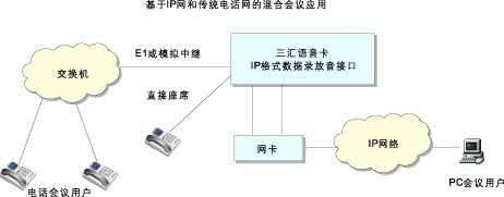 交互式電話會議與傳統(tǒng)的電話會議的區(qū)別就在于開會時(shí)不需要由會議主持人控制由某人發(fā)言,而是所有與會者可以自由發(fā)言,就如同坐在同一間會議室中一樣。三匯公司所有型號的基于DSP技術(shù)的語音卡,包括數(shù)字卡和模擬卡,均內(nèi)置了對交互式電話會議的支持,只要使用語音卡,無需額外的會議卡,就可以構(gòu)成具有完善功能的交互式電話會議系統(tǒng)。三匯公司還采用了獨(dú)創(chuàng)的分布式電話會議實(shí)現(xiàn)技術(shù),電話會議的關(guān)鍵資源----混音器分布在每一個(gè)通道中。因此語音卡對會議系統(tǒng)的支持具有極大的靈活性,既可以召開大量的三方會議,也可召開所有通道同時(shí)參加的大型會議,無論是會議的數(shù)量還是參加會議的人數(shù)均只受系統(tǒng)總通道數(shù)的限制。三匯語音卡還支持IP會議和傳統(tǒng)電話會議的混合應(yīng)用。