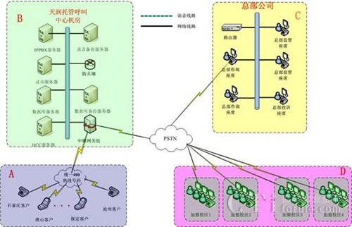 總部部署電腦座席,各加盟校區(qū)一般部署電話座席,電話轉(zhuǎn)接可以通過按鍵直接完成。