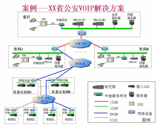 全網采用分級多域的管理方式,在省廳部署中央軟交換,在各市部署區(qū)域軟交換,管理本區(qū)域電話網。全網統一編號,繼承原有編號規(guī)則,同時保證將來網絡擴展。網絡設備支持統一管理和分級管理,降低網絡維護的復雜程度: