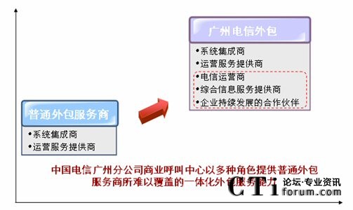 外包呼叫中心市場(chǎng)如今已是群雄逐鹿的格局,除了中國(guó)電信廣州分公司商業(yè)呼叫中心以外,市場(chǎng)上還涌現(xiàn)出了電訊盈科、飛翱、賽迪呼叫、微創(chuàng)、翔龍、歐唯特服務(wù)和維音數(shù)碼等眾多的外包呼叫中心供應(yīng)商。讀者也許會(huì)問(wèn),中國(guó)電信廣州分公司商業(yè)呼叫中心與其他外包呼叫中心供應(yīng)商相比,最大的區(qū)別是什么?