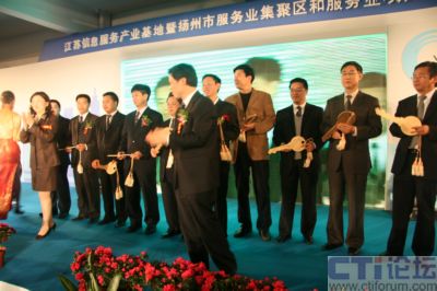 4月21日,江蘇信息服務(wù)產(chǎn)業(yè)基地暨揚(yáng)州市服務(wù)業(yè)集聚區(qū)和服務(wù)業(yè)項目推介洽談會在江蘇信息服務(wù)產(chǎn)業(yè)基地(揚(yáng)州)隆重召開,省信息產(chǎn)業(yè)廳副廳長龔懷進(jìn)、揚(yáng)州市委常委、常務(wù)副市長張京霞為省信息安全技術(shù)中心揭牌,中國網(wǎng)通集團(tuán)公司總工程師滕勇,神州數(shù)碼高級副總裁陳勇,上海萬得信息股份董事長陸風(fēng)等數(shù)十位集團(tuán)公司老總現(xiàn)場祝賀,同時IBM、AVAYA、優(yōu)勝資訊、神州數(shù)碼等60多家企業(yè)現(xiàn)場簽定了投資合作協(xié)議,而華潤通信、中國電信、酒店無憂、漢世紀(jì)等10家企業(yè)則從廣陵區(qū)委書記孔令俊手中接過了入駐金鑰匙,成為首批入駐江蘇信息服務(wù)產(chǎn)業(yè)基地的企業(yè),至此江蘇信息服務(wù)產(chǎn)業(yè)基地迎來首發(fā)項目招商的“開門紅”,江蘇信息服務(wù)產(chǎn)業(yè)基地也因此被業(yè)界冠以中國首家專業(yè)定位信息呼叫和數(shù)據(jù)處理產(chǎn)業(yè)的“中國聲谷”的美譽(yù)。 “江蘇信息服務(wù)產(chǎn)業(yè)基地(揚(yáng)州)”位于廣陵新城內(nèi),為省信息產(chǎn)業(yè)廳與揚(yáng)州市政府聯(lián)手打造的中國首家專業(yè)定位于呼叫信息和數(shù)據(jù)處理產(chǎn)業(yè)的省級信息服務(wù)業(yè)基地,占地2.52平方公里,總投資50億元,處于揚(yáng)州ECBD核心區(qū)域,交通便捷,區(qū)位優(yōu)勢獨(dú)特,生態(tài)環(huán)境優(yōu)美;匕凑铡爱a(chǎn)業(yè)社區(qū)”的標(biāo)準(zhǔn)和“商務(wù)公園”的理念規(guī)劃建設(shè),重點(diǎn)發(fā)展信息服務(wù)產(chǎn)業(yè)及具有揚(yáng)州特色的城市信息化應(yīng)用軟件和嵌入式軟件產(chǎn)業(yè),立足長三角、面向全國、服務(wù)世界,逐步發(fā)展成為全國乃至世界呼叫中心產(chǎn)業(yè)最佳實(shí)踐基地、全國生產(chǎn)性服務(wù)業(yè)的標(biāo)桿示范基地及呼叫中心人才培訓(xùn)與派遣基地。