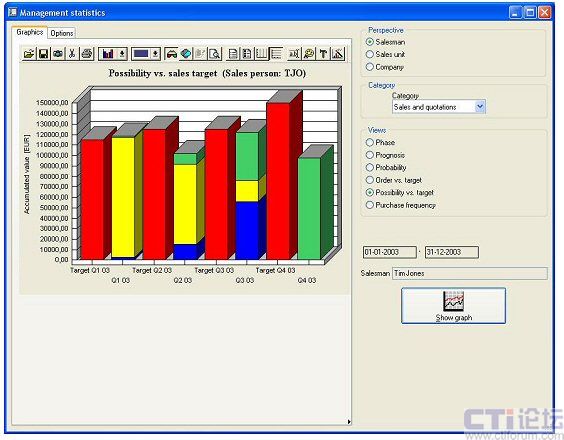 使企業(yè)用戶可以獲得與銷售相關(guān)的主要信息的圖形化視圖。通過該方案能夠簡化機(jī)會和管道管理,由此可獲得銷售和營銷成果的即時(shí)概況,同時(shí)可以提供銷售和營銷經(jīng)理與其團(tuán)隊(duì)之間的有效協(xié)作。企業(yè)可通過系統(tǒng)建立和監(jiān)視銷售單位中每個(gè)成員的銷售目標(biāo),并可以快速方便地瀏覽或修改該目標(biāo),能夠快捷地獲得季度或年度目標(biāo)的即時(shí)概況,并且使用直觀的圖形化圖表顯示這些關(guān)鍵數(shù)據(jù)和數(shù)據(jù)趨勢。管理層還可以對銷售歷史的任意時(shí)間段中的銷售人員相關(guān)的收入和支出、盈利和虧損數(shù)據(jù)進(jìn)行分析和比較。