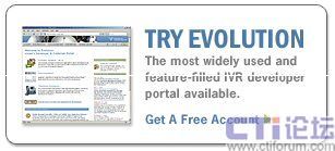 Evolution是一個(gè)免費(fèi)的面向開(kāi)發(fā)人員的互聯(lián)網(wǎng)社區(qū)門(mén)戶。通過(guò)基于WEB頁(yè)面的圖形化的IVR應(yīng)用設(shè)計(jì)和開(kāi)發(fā)環(huán)境,提供類(lèi)似工作流的開(kāi)發(fā)方式,使得開(kāi)發(fā)人員即使不了解VoiceXML和CCXML規(guī)范也能開(kāi)發(fā)出高質(zhì)量的IVR應(yīng)用系統(tǒng)。Voxeo通過(guò)Evolution為開(kāi)發(fā)人員提供免費(fèi)的開(kāi)發(fā)和測(cè)試環(huán)境,開(kāi)發(fā)人員可以自由地在Evolution社區(qū)中開(kāi)發(fā)、部署和測(cè)試各種復(fù)雜的應(yīng)用。Voxeo為開(kāi)發(fā)人員提供免費(fèi)的全天候的技術(shù)支持。目前有超過(guò)33,000的開(kāi)發(fā)人員在Voxeo的開(kāi)發(fā)社區(qū)中注冊(cè)并開(kāi)發(fā)和測(cè)試他們各自的應(yīng)用。