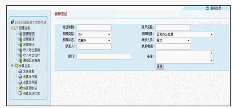 在故障受理方面,該系統(tǒng)同樣出色。它可以建立統(tǒng)一的語音受理號碼和建立網(wǎng)站,方便用戶通過語音和電腦雙途徑進(jìn)行故障申報(bào)。而出色的無紙收發(fā)傳真功能更是方便使用者通過網(wǎng)絡(luò)用軟件的方式發(fā)送傳真或查詢接收到的傳真文件。
