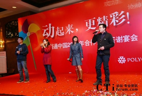 CTI論壇(ctiforum)2月22日消息(記者 袁青): 2009年月12月30日下午,寶利通“動(dòng)起來、更精彩”主題年會(huì)在北京國(guó)航萬麗酒店隆重召開,直真信通公司代表與寶利通(中國(guó))全體員工以及中國(guó)區(qū)合作伙伴歡聚一堂,共饗盛典。在這里大家一同度過了4個(gè)多小時(shí)的快樂時(shí)光。除了美食之外,更多的是享受了一場(chǎng)視聽盛宴。寶利通這支勇打勝仗的大隊(duì)伍,表演了自編自演的節(jié)目,內(nèi)容豐富多彩,堪稱一場(chǎng)民間春晚!