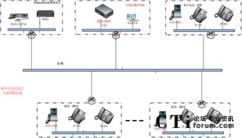 通過網(wǎng)絡(luò)還可以將系統(tǒng)與現(xiàn)有高清視頻會議系統(tǒng)進(jìn)行連接,在VVX1500話機(jī)之間實現(xiàn)單點(diǎn)視頻通信的基礎(chǔ)上,實現(xiàn)VVX1500的多點(diǎn)通訊以及和視頻會議終端之間的點(diǎn)對點(diǎn)視頻通信。同時,領(lǐng)導(dǎo)也可以通過MCU加入到視頻會議中實現(xiàn)多方視頻會議,這樣就可以實現(xiàn)領(lǐng)導(dǎo)在辦公室參加視頻會議,而不用每次去會議室開會。