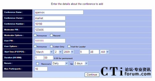 設(shè)定會議基本信息后,點擊下面的Add Conference button,頁面如下: