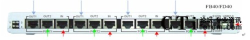 OpenVox的FB40\FD40單機(jī)面板接口包括BRI\PRI接入口(IN)、用于連接主服務(wù)器E1接入口(OUT2)和用于連接備用服務(wù)器E1接入口(OUT),USB口用于連接主服務(wù)器,開關(guān)用于切換電路狀態(tài),(可以手動或者通過命令行進(jìn)行切換),如圖所示: