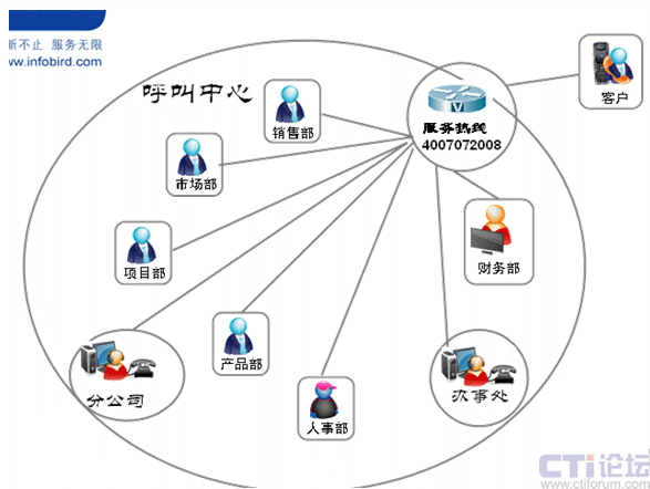 呼叫中心可以與企業(yè)的財(cái)務(wù)系統(tǒng)、OA系統(tǒng)、ERP系統(tǒng)、CRM系統(tǒng)等進(jìn)行整合,幫助企業(yè)輕松實(shí)現(xiàn)整個(gè)業(yè)務(wù)流程的管理、企業(yè)內(nèi)外溝通過(guò)程的管理。每個(gè)流程、每個(gè)節(jié)點(diǎn)都是可以被量化,可以被審查和糾正的。呼叫中心部門(mén)已經(jīng)不再局限于對(duì)客戶(hù)的服務(wù)提供,已經(jīng)完全成長(zhǎng)為一個(gè)提升企業(yè)效率和運(yùn)營(yíng)能力的服務(wù)管理部門(mén)。通過(guò)下表我們看到呼叫中心在組織中的職能架構(gòu)發(fā)生變化,已經(jīng)完全成為與客戶(hù)溝通的最重要的部門(mén)之一。