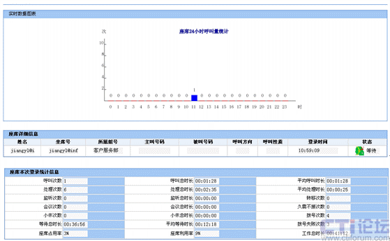 客戶(hù)撥打企業(yè)對(duì)外聯(lián)系號(hào)碼4007072008,在聽(tīng)到語(yǔ)音提示“歡迎致電。。。。。。,技術(shù)支持按3。。。。。!钡臅r(shí)候,既可以按3,將電話分配到項(xiàng)目部的最適合這個(gè)工作的人的手機(jī)上來(lái)完成項(xiàng)目支持工作,也可以直接撥8123將電話指定分配到小河的手機(jī)上,讓工程師小河來(lái)完成項(xiàng)目支持工作。這樣一來(lái),不管公司的人員在哪里,客戶(hù)只要撥打公司的總機(jī)號(hào)碼,就可以找到人員為其提供服務(wù),同時(shí),所有的通話,都在系統(tǒng)的管理和控制之內(nèi)。下圖是對(duì)應(yīng)的呼叫監(jiān)控的圖表,可以實(shí)時(shí)看到員工的工作狀態(tài):