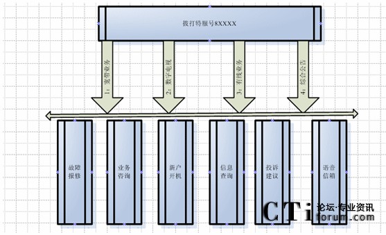 客戶利用電話、傳真等撥打某一特服號(hào)碼(如8xxxx)進(jìn)入客戶服務(wù)中心系統(tǒng),本系統(tǒng)依托各類業(yè)務(wù)技術(shù)支持系統(tǒng)和網(wǎng)絡(luò)系統(tǒng),通過人工受理或自動(dòng)語音服務(wù)等方式全天24小時(shí)不間斷地為客戶提供各種服務(wù),形成了對外服務(wù)于客戶的無形窗口,對內(nèi)管理、分析、決策相結(jié)合的客戶服務(wù)中心。