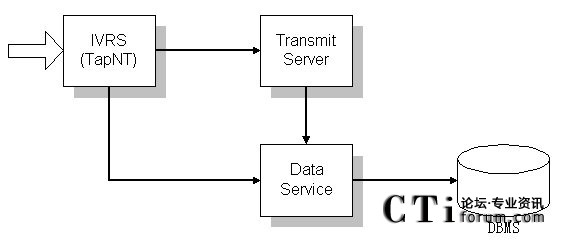 后臺程序使用Data Service 作為數(shù)據(jù)庫中間插件,TapNt(IVR)負(fù)責(zé)運行流程。TapNt(IVR)查詢數(shù)據(jù)要通過Data Service來進(jìn)行。這項設(shè)置的目的在于使數(shù)據(jù)插件得到充分利用。當(dāng)話務(wù)量增多時,可以多開幾個Data
