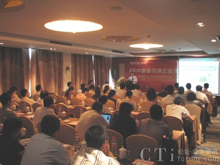 CTI論壇(ctiforum)08月28日消息: 2009年用友TurboCRM管理高峰論壇2009年8月7日在杭舉行,眾多來(lái)自杭州及其周邊地區(qū)企業(yè)的的銷(xiāo)售總監(jiān)、市場(chǎng)經(jīng)理和企業(yè)老板匯聚一堂,共同聆聽(tīng)專家對(duì)企業(yè)在危機(jī)中的應(yīng)變策略,共同探討轉(zhuǎn)型升級(jí)之道。