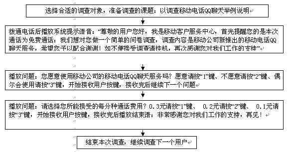 。。2、定期調查移動公司現(xiàn)有產品在用戶心目中的認知度:如調查用戶現(xiàn)在撥打長途固定電話是直接撥多呢?還是加撥17951多?經常使用電話QQ聊天嗎?