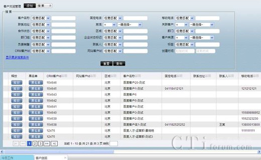 例如,以區(qū)域為條件進(jìn)行搜索,區(qū)域選擇北京后,點擊查詢,你想要的北京區(qū)域的客戶全部出現(xiàn)在客戶列表中。