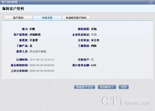 根據(jù)實際情況可以添加該用戶的銷售進(jìn)程,更直觀更速度的查詢和跟進(jìn)潛在客戶以及合作的客戶。