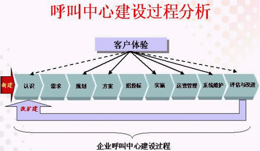 從以上的過程分析來看,無論新建或改擴建,企業(yè)都需要學習呼叫中心理念并加強認識、經(jīng)過可行性研究、現(xiàn)狀評估整理出需求、進行呼叫中心的戰(zhàn)略規(guī)劃、設計建設方案、進行招投標確定系統(tǒng)集成商、考慮項目實施策略和方法、建立或改進運營管理和系統(tǒng)維護的體系等。