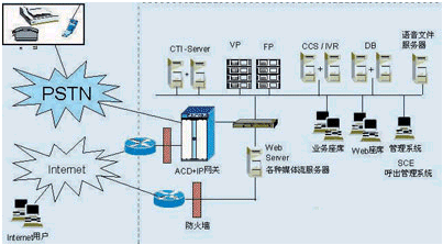 (1) 接入系統(tǒng):完成呼叫的接入和呼出,分配相應(yīng)的媒體處理通道,主要由交換接入設(shè)備(如ACD)、媒體服務(wù)器、CTI Server、CCS等組成。其中,媒體服務(wù)器主要完成Internet的網(wǎng)上呼叫的處理,處理后的呼叫通過CCS進(jìn)行統(tǒng)一排隊(duì)分配,并路由到相應(yīng)的人工座席上。