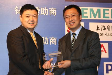圖: F&S全球主席David Frigstad親自授予華為軟件“2009數字城市解決方案創(chuàng)新獎”。
