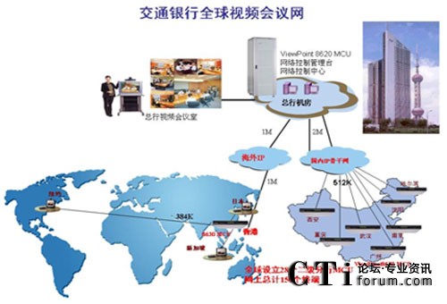 華為視訊構建的視頻會議系統(tǒng)覆蓋交通銀行全國27個省級分行和全球6個分支機構,采用三級組網模式。系統(tǒng)主會場在上海交通銀行總部。系統(tǒng)采用IP組網,總行采用一套ViewPoint8620視訊交換平臺作為頂級平臺、各省分行及海外分行采用28套ViewPoint8630 IP視訊平臺作為二級平臺,各地市分行按當?shù)氐臉I(yè)務需求或采用會議電視終端掛在省分行的二級MCU下,或放置一套ViewPoint8630 MCU組建本地市分行的三級視頻會議網絡,并有效接入總行的MCU平臺。網上目前總計有150套終端,實現(xiàn)了交通銀行總部和全球所有分支機構之間的遠程會議、視頻溝通、遠程培訓等功能。在節(jié)約寶貴時間、精力和金錢的同時,提高了銀行管理和決策的效率。