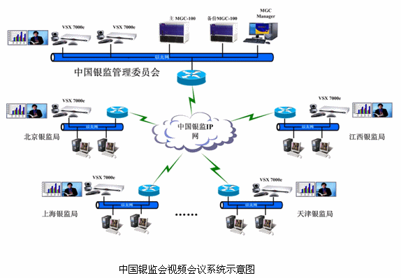 中國(guó)銀監(jiān)會(huì)目前已經(jīng)擁有一個(gè)高速、高可靠性的ATM骨干傳輸網(wǎng)絡(luò),網(wǎng)絡(luò)采用星形結(jié)構(gòu),各分支機(jī)構(gòu)到北京總部的線路均為2條15M ATM線路,這種優(yōu)良的網(wǎng)絡(luò)非常適合視頻會(huì)議業(yè)務(wù)的運(yùn)營(yíng)。視頻會(huì)議網(wǎng)建立完成后可以實(shí)現(xiàn)通過(guò)遠(yuǎn)程視頻會(huì)議,遠(yuǎn)程處理重點(diǎn)銀行業(yè)金融機(jī)構(gòu)監(jiān)事會(huì)的日常管理工作;遠(yuǎn)程審查銀行業(yè)金融機(jī)構(gòu)高級(jí)管理人員任職資格;遠(yuǎn)程討論協(xié)商制定有關(guān)銀行業(yè)金融機(jī)構(gòu)監(jiān)管的規(guī)章制度和辦法;遠(yuǎn)程對(duì)銀行業(yè)金融機(jī)構(gòu)實(shí)監(jiān)管,依法對(duì)違法違規(guī)行為進(jìn)行查處;更加可以通過(guò)遠(yuǎn)程雙流會(huì)議,按照國(guó)家有關(guān)規(guī)定,遠(yuǎn)程公布全國(guó)銀行數(shù)據(jù)、報(bào)表。