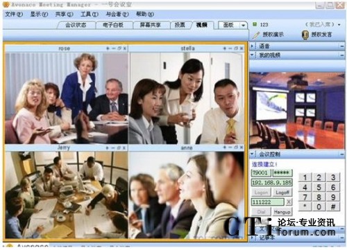 它功能豐富,融合視頻會議、數(shù)據(jù)會議于一體;操作頁面清晰友好,簡單方便,用戶可以隨時隨地與他人進行“面對面”的交流,為政府、企業(yè)的視頻會議提供低成本、多功能的解決方法。