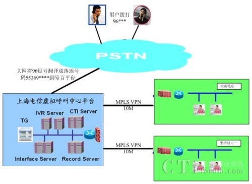 系統(tǒng)采用統(tǒng)一特服號96***作為接入,統(tǒng)一落地到上海電信虛擬呼叫平臺