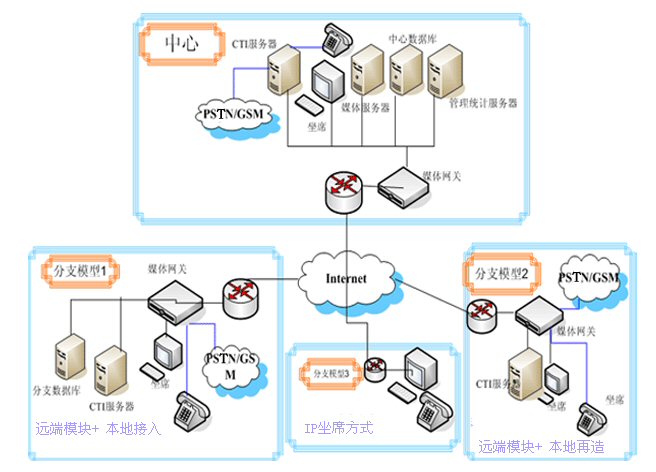 - 多種分布式、遠端坐席實現(xiàn)模式,滿足用戶不同分支機構(gòu)的業(yè)務和規(guī)模需要。