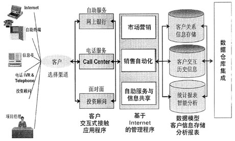 針對商業(yè)銀行面臨的挑戰(zhàn)和真實的需要,Oracle開發(fā)了面向銀行業(yè)的CRM解決方案。該解決方案提供全方位、統(tǒng)一的多渠道協(xié)同的客戶交互服務(wù)入口,包括網(wǎng)上自助服務(wù)、網(wǎng)上他助服務(wù)(通過Call Center在線指導(dǎo)客戶理財或提供投資建議)、電話自助服務(wù)、電話專家服務(wù)、電話智能市場推銷和銷售等,F(xiàn)場服務(wù)則提供客戶經(jīng)理與客戶面對面交流的能力,包括知識共享(金融市場信息、銀行產(chǎn)品信息和各業(yè)務(wù)部門發(fā)布的信息等)、銀行信息的及時獲取、產(chǎn)品和服務(wù)介紹、適時的投資建議、客戶交易行為追蹤、通過智能化工具提供專家服務(wù)、銷售機會管理等,允許重點客戶通過Web、電話或與客戶經(jīng)理/投資顧問面談等方式,提供更靈活的服務(wù)選擇和更及時的服務(wù),以保留大客戶群,增長股東利益。