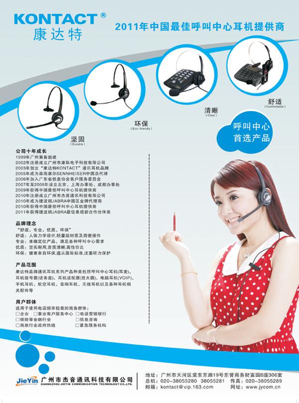 康達(dá)特通訊耳機(jī)產(chǎn)品主要應(yīng)用于企業(yè)和政府的客戶服務(wù)中心、電話營銷中心、商務(wù)中心、緊急指揮中心、酒店總機(jī)等辦公場所,對于長期從事電話營銷、電話咨詢、商務(wù)調(diào)查等工作人員,是一件必不可少的通訊工具。
