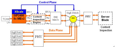 全系列IXP-2XXX網絡處理器都可拆分為『控制管道』(Control