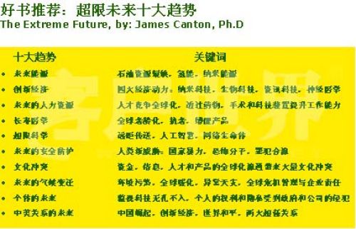 劉總(臺(tái)灣遠(yuǎn)東集團(tuán))很清楚,他是從臺(tái)灣過(guò)來(lái)的,臺(tái)灣有很多好書(shū),我個(gè)人最喜歡是臺(tái)灣的誠(chéng)品書(shū)店,每次去臺(tái)北都會(huì)去逛那個(gè)誠(chéng)品書(shū)店,有很多新書(shū),其中有一本關(guān)于未來(lái)十大趨勢(shì)的書(shū),比如你會(huì)看到一些很新的詞匯,能源,長(zhǎng)壽的醫(yī)學(xué),人如何活到120歲,這個(gè)在我們的年代可能就已經(jīng)實(shí)現(xiàn)了,包括你會(huì)看未來(lái)的氣候會(huì)如何變遷,然后我們未來(lái)中美關(guān)系是什么樣子的。這里面的討論對(duì)于我們來(lái)講,雖然跟我們個(gè)人生活關(guān)系并沒(méi)有巨大的影響,但是我們會(huì)想到一些我們可以比別人做得更快的、一些創(chuàng)新的東西。