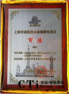 CTI論壇(ctiforum)7月19日消息(記者 潘婷婷):2010年7月,在夏日的熱潮中,維音又迎來了值得慶賀的殊榮。作為上海市高新技術(shù)軟件企業(yè),維音自主研發(fā)的軟件產(chǎn)品VisionROP再一次得到了認(rèn)可,被評為“2009年度上海市高新技術(shù)成果轉(zhuǎn)化項目百佳”。