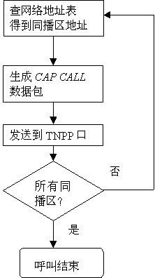 本地呼叫登記了同播功能的本地機(jī)時, 自動臺通過PCM數(shù)字中繼, 從MFC信號中取到BP機(jī)號及主叫電話號碼, 或從用戶DTMF撥號中得到信息碼,形成發(fā)呼串送到發(fā)呼工作站,由發(fā)呼工作站根據(jù)同播區(qū)號,往所有的自動臺發(fā)CAP CALL,后面的呼叫過程就由同播地自動臺來完成。同播區(qū)可以為包括本地區(qū)的多個區(qū)。下圖中TNPP口可以為本地TNPP端口或聯(lián)網(wǎng)TNPP端口。