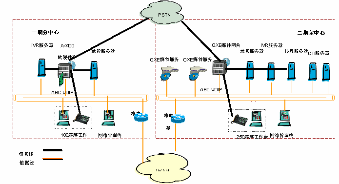 基礎(chǔ)語音系統(tǒng)采用阿爾卡特OmniPCX Enterprise語音通信平臺,它采用分布式的語音體系架構(gòu),完全融合IP技術(shù),并可集成傳統(tǒng)的TDM語音。OmniPCX Enterprise提供開放的標(biāo)準(zhǔn)和靈活的擴展能力,并提供99.999%的高可靠性。讓用戶靈活的配置其座席的地理位置和通信方式,并保證系統(tǒng)運行安全可靠。OmniPCX Enterprise交換機(二期)計劃采用Appliance Server呼叫服務(wù)器雙備份結(jié)構(gòu),提供RSI接口與GENESYS相連,以及并線錄音系統(tǒng)接口。今后,項目還將采用先進(jìn)的阿爾卡特-My Phone IP WEB軟電話,提高內(nèi)部通信能力,優(yōu)化業(yè)務(wù)流程。