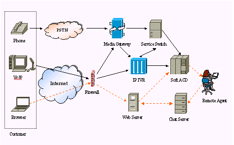 FineSupportIP Contact Center基于先進(jìn)的LodeSoft iAfx體系架構(gòu),完全統(tǒng)一來自電話和Internet的客戶服務(wù)請(qǐng)求。來自PSTN的電話語音首先經(jīng)由媒體網(wǎng)關(guān)轉(zhuǎn)換為IP電話數(shù)據(jù)流,具有完全分布式特性,能夠幫助江蘇網(wǎng)通實(shí)現(xiàn)多點(diǎn)的、虛擬統(tǒng)一的客戶服務(wù)中心的目標(biāo);其基于VoIP技術(shù)的軟件ACD(自動(dòng)呼叫分配器)根據(jù)呼叫類型、服務(wù)人員忙閑狀態(tài)、可定制的分配策略進(jìn)行呼叫分配;基于Voice XML技術(shù)的IP-IVR單元,可以靈活地定義自動(dòng)語音服務(wù);系統(tǒng)另一顯著特點(diǎn)是系統(tǒng)遵循開放性原則,可集成第三方硬件和第三方業(yè)務(wù)軟件,使網(wǎng)通逐步實(shí)現(xiàn)統(tǒng)一、全面的客戶服務(wù)體系。
