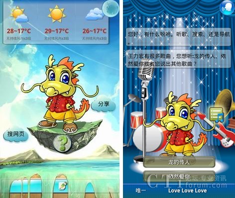 聰明、善解人意的小唐龍基于開放的Android操作系統(tǒng),在捷通華聲全球首個(gè)全方位智能人機(jī)交互(HCI)感知云-靈云平臺(tái)的支持下,會(huì)學(xué)習(xí),善思考,能說會(huì)聽,能寫會(huì)識(shí)。此次正式發(fā)布的小唐龍界面更加清新亮麗,令人耳目一新;獨(dú)一無(wú)二的語(yǔ)音與手寫全方位人機(jī)交互,讓用戶在任何情況下都可以無(wú)障礙的使用小唐龍;重新構(gòu)建設(shè)計(jì)的音樂播放的界面,增加歌詞顯示功能,讓用戶隨心所欲的添加、刪除、選擇、演唱歌曲;新聞播報(bào)清晰自然,流暢動(dòng)聽,新聞內(nèi)容更加豐富,讓天下大事隨時(shí)都掌握在用戶手中;地圖查詢實(shí)現(xiàn)全國(guó)范圍方便快捷的導(dǎo)航、公交查詢、餐飲服務(wù);全國(guó)地區(qū)天氣預(yù)報(bào)等功能的完善,給用戶的生活帶來(lái)的極大的便利。全新小唐龍讓手機(jī)助手之名更加名副其實(shí)!