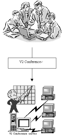 I P視頻會議,是一種利用普通的PC機加上簡單的視頻攝像頭和耳機麥克風,通過Internet或者是局域網(wǎng)進行傳輸,以低廉的成本傳送數(shù)據(jù)、視頻和音頻信號的新型會議方式。V2公司的視頻會議產(chǎn)品V2 Conference 就采用了這種技術(shù)先進而且經(jīng)濟合算的方式,與傳統(tǒng)的需要專用的服務器和硬件支持的視頻會議相比,該系統(tǒng)可以使您無需進行成本高昂的投入,就實現(xiàn)高質(zhì)量、高可靠性的音視頻通訊。同時,為了方便您的管理,V2 Conference提供了會議管理的功能,使您足不出戶,就可以掌控全局。