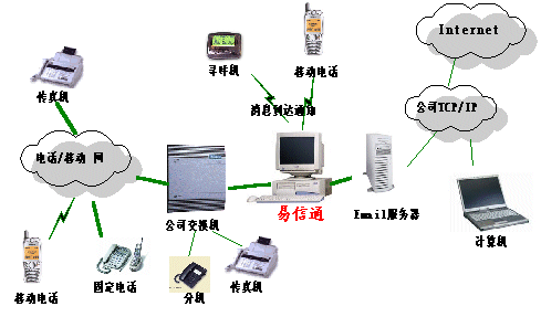 易信通可代替:語音信箱、自動總機(jī)、傳真服務(wù)器。