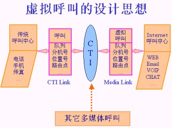 由于有了這種“虛擬呼叫”的技術,CTI平臺才能夠對實際的電話呼叫和來自Internet的訪問進行統(tǒng)一的處理。這是一種完整意義上的將傳統(tǒng)呼叫與Internet訪問完美結合的設計思想。