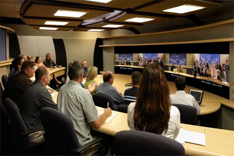 而真正的極致遠(yuǎn)真環(huán)境則是由一組而不是一個(gè)攝像頭將遠(yuǎn)端會場多個(gè)角度同時(shí)拍攝,組合為完整的無拼接畫面;會場顯示系統(tǒng)全景顯示遠(yuǎn)端會場,每個(gè)角度與會者均清晰可辨;本地和遠(yuǎn)端渾然一體,仿佛身居同一個(gè)會場;這就是寶利通極致遠(yuǎn)真帶給您的當(dāng)今最高效遠(yuǎn)程交流工具,以其獨(dú)特的優(yōu)勢彌補(bǔ)您93%的信息空白。