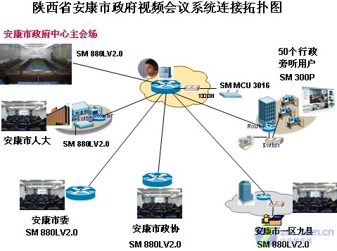 讓安康市政府尤為滿意的是,瑞福特的專(zhuān)業(yè)服務(wù)團(tuán)隊(duì),為其量身定制了最適合的解決方案:1臺(tái)MCU 3016視頻會(huì)議服務(wù)器放在機(jī)房;15臺(tái)視頻會(huì)議硬件終端SM880L部署在市中心會(huì)場(chǎng)以及各縣級(jí)政府會(huì)議室;50套軟件終端SM300安裝在PC和筆記本電腦上,輕松實(shí)現(xiàn)了安康市政府各項(xiàng)視頻會(huì)議應(yīng)用以及緊急事件的應(yīng)急指揮和溝通。