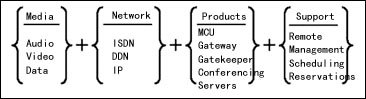 6. 其他專業(yè)行業(yè)。如氣象會商、水利防汛、司法應用、銀行應用等。 隨著中國加入WTO和世界經(jīng)濟一體化發(fā)展,對于任何公司,靠技術(shù)壁壘去贏得市場幾乎是不可能的。從圖3也可以看出,視訊應用包括視音頻及數(shù)據(jù)源(Media)、傳輸網(wǎng)絡(luò)(Network)、視訊設(shè)備(Products)和專業(yè)的服務和支持(Support)。