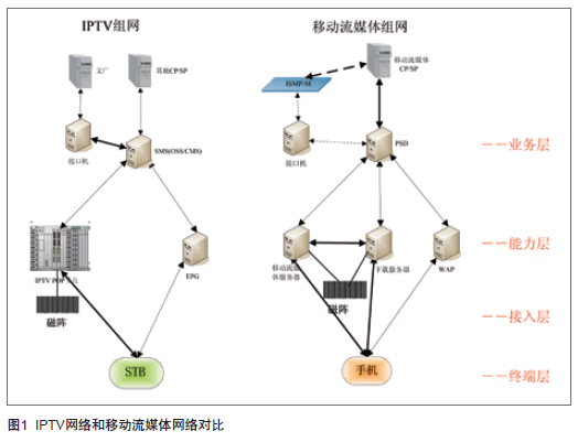 如圖1所示,左邊為IPTV網(wǎng)絡,右邊為移動流媒體網(wǎng)絡。