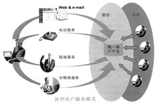 在以客戶服務中心為前臺的新型服務模式中,統(tǒng)一了客戶服務的平臺?蛻糁恍枰涂蛻舴⻊罩行拇蚪坏溃械膯栴}都可以通過客戶服務中心解決。用戶只需要打一次電話即可解決所有問題!同時,客戶服務中心作為一個信息島,統(tǒng)一與企業(yè)內(nèi)部各個部門、資源進行溝通,以方便解決用戶的所有問題。