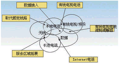 數(shù)據(jù)服務(wù)同本地電話服務(wù)的融合,是不來最重要的融合趨勢之一,其主要體現(xiàn)在通過本地電話可以解決數(shù)據(jù)業(yè)務(wù)的接入問題,可以提供窄帶或?qū)拵У慕尤肽芰。同時(shí),可以為Internet服務(wù),如電子郵件服務(wù)同電話話音服務(wù)結(jié)合起來創(chuàng)造條件。一種未來的發(fā)展方向就是利用電話來接收電子郵件同時(shí)可以用電子郵件的方式閱讀語言信箱中的留言。“聽電子郵件,看語言信箱”是對這種融合服務(wù)的最好描述。而數(shù)據(jù)業(yè)務(wù)同長途電話業(yè)務(wù)的融合集中于通過VoIP技術(shù)提供長途電話服務(wù),競爭收入最大的電信市場。數(shù)據(jù)服務(wù)同有線電視娛樂服務(wù)的融合主要體現(xiàn)在以Cable Modem做為數(shù)據(jù)接入手段和視頻點(diǎn)播這樣的娛樂服務(wù)。通過Cable Modem,有線電視網(wǎng)也可以提供本地電話和長途電話接入業(yè)務(wù),象AT&T和TCI 及MediaOne 正在進(jìn)行的電話業(yè)務(wù)實(shí)驗(yàn)。而寬帶的數(shù)據(jù)接入則為數(shù)據(jù)服務(wù)的寬帶化提供了條件。