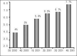 在美國的泡沫經(jīng)濟(jì)破滅、市場(chǎng)極度低迷的時(shí)候,歐洲又傳來第三代無線通信技術(shù)——WCDMA因產(chǎn)品、市場(chǎng)等諸多原因全面推遲的消息,這對(duì)本來就處于蕭條狀態(tài)的全球通信業(yè)來說,無疑雪上加霜。業(yè)內(nèi)人士在不斷地尋找和探討,究竟什么樣的需求才是目前市場(chǎng)的驅(qū)動(dòng)力?究竟什么樣的技術(shù)才能真正體現(xiàn)市場(chǎng)價(jià)值呢?