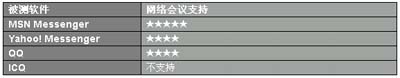 網(wǎng)絡(luò)會(huì)議也就是多個(gè)人在同一個(gè)窗口中發(fā)言,在這一點(diǎn)上無論是人數(shù)和操作簡易程度上MSN無疑是最出色的;Yahoo! Messenger也比較方便,但設(shè)置比較復(fù)雜,點(diǎn)對(duì)點(diǎn)的響應(yīng)不如MSN出色。