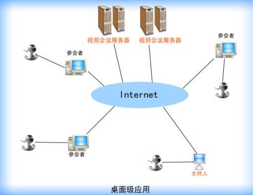 在桌面級別的視頻會議需求中,可根據實際需求和網絡帶寬支持情況選用標準版本和大視頻版本,前者可支持160X120分辨率格式的視頻效果,后者可支持640X480分辨率格式的視頻效果,同時在會議過程中,用戶可將任意與會者的視頻切換到全屏顯示,并可對接收到的多路視頻進行排列。
