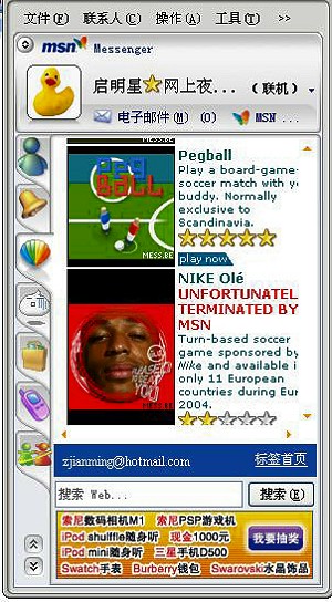 3) 拼接代替加強(qiáng),F(xiàn)有應(yīng)用的簡單決定了IM軟件本身的簡單,因此IM本身變得不受關(guān)注,廠商所作的大多是功能拼接,例如MSN加強(qiáng)聯(lián)網(wǎng)游戲,QQ傍上移動(dòng)。甚至可以認(rèn)為,IM本身已經(jīng)被置于次要位置。